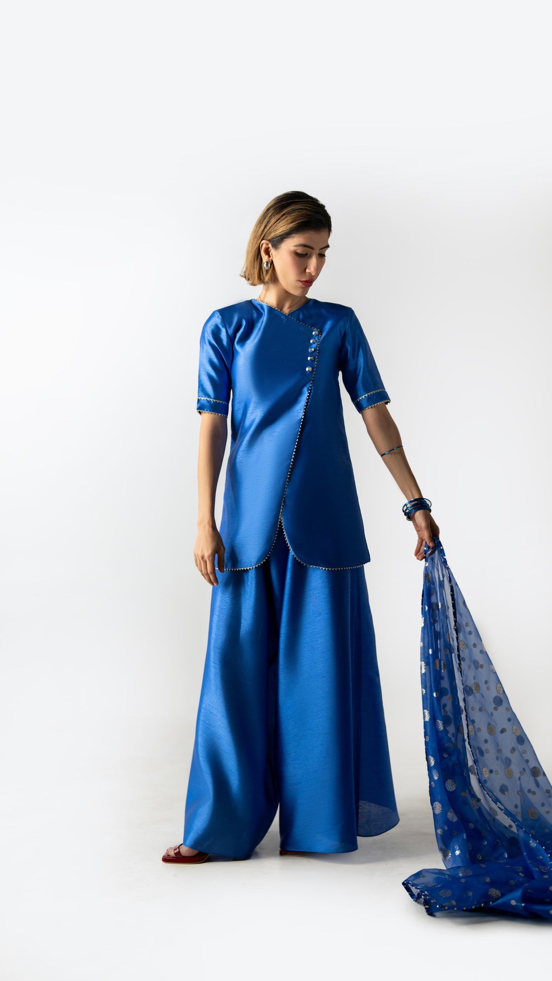 I recently purchased an outfit Midnight Fold, made with double georgette fabric and I’m so impressed, the quality is beautiful, lightweight yet elegant, and falls perfectly. I love the style and stitching, and their service and coordination were excellent throughout the process. I highly recommend Studios by Syra for anyone seeking style, quality, and excellent customer care.