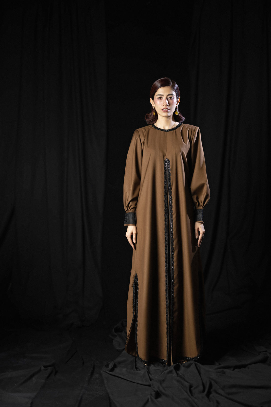 Crafted as a kaftaan in structured tropical suiting, Brown Theory explores the balance between form...